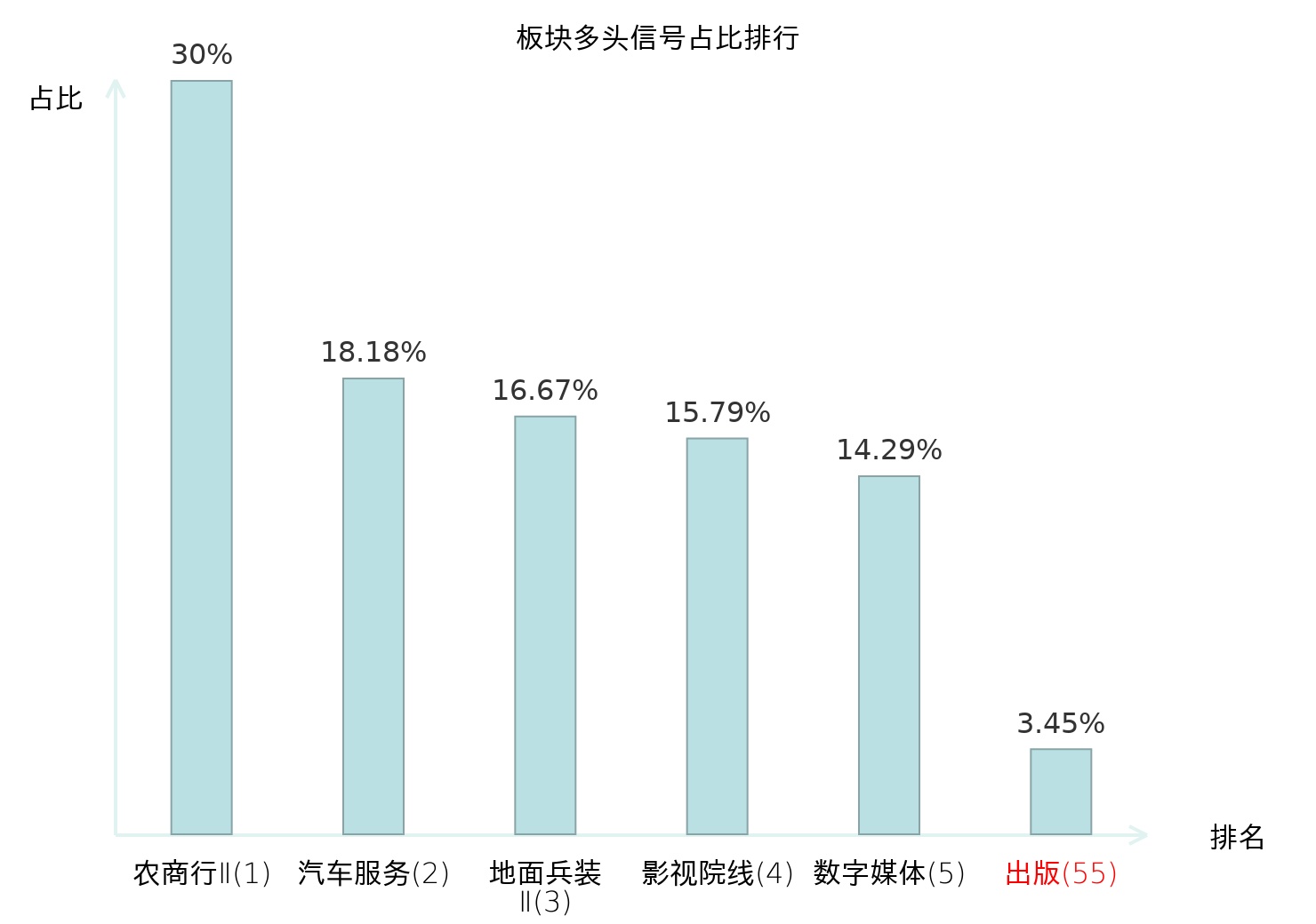 全市场所有行业板块中主力多头信号占比排名中,农商行Ⅱ板块位居第一。焦炭Ⅱ板块名次提升最快,较昨日上升115位。