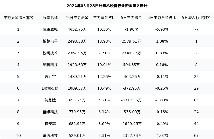 从主力资金流向来看,计算机设备行业今日主力资金流入32.25亿元,在所有申万二级行业中排名:52/131。