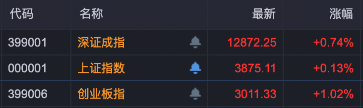 11月26日,A股三大指数集体低开高走。截至发稿,三大指数翻红,创业板指涨超1%。