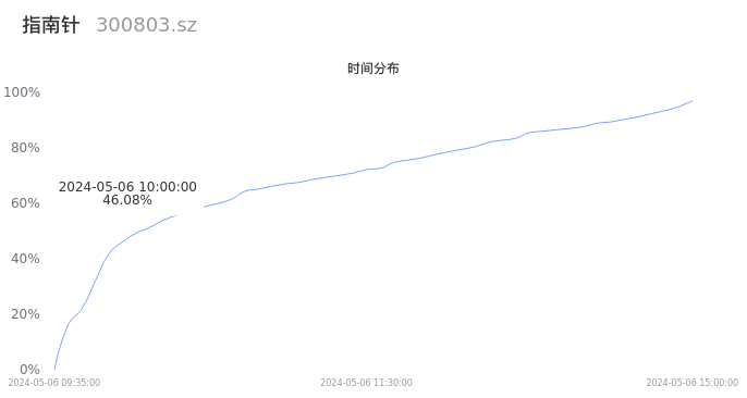 根据成交分布分析,该股票当天缩量成交,成交清淡。时间上看,早盘前半小时成交量占据当天总成交量的46.08%;价格上看,成交呈现中间峰。成交分布分析主要研究股票成交的分布特性,不具有预测功能,请知悉。