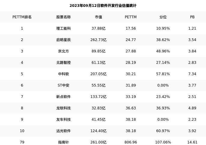 从估值角度看:指南针最新市盈率PETTM为806.96,在行业内排名79/130,处于107.06分位。