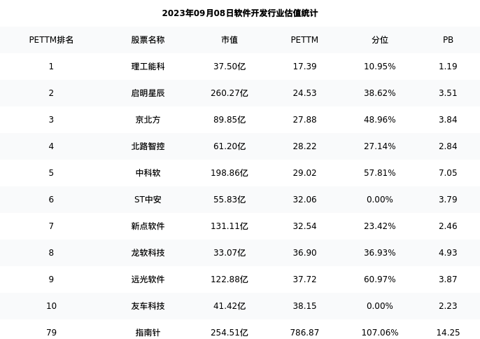 从估值角度看:指南针最新市盈率PETTM为786.87,在行业内排名79/130,处于107.06分位。