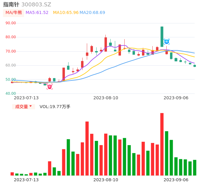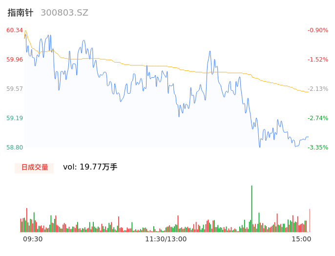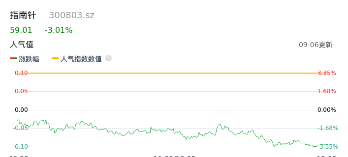 09月06日,指南针收报59.01,股价涨幅-3.01%,成交金额11.77亿元,换手率4.90%。