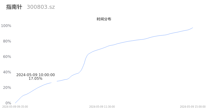 根据成交分布分析,该股票当天放量成交,成交清淡。时间上看,早盘前半小时成交量占据当天总成交量的17.05%;价格上看,成交呈现中间峰。成交分布分析主要研究股票成交的分布特性,不具有预测功能,请知悉。