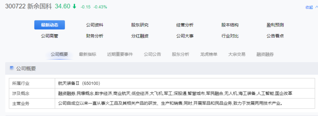 今天为大家带来的是新余国科,我们先来了解一下这家公司是做什么的,我们通过公司概要可以清楚的看到:公司所属行业是航天装备。