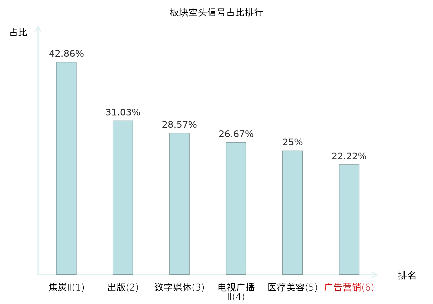 从主力宝信号数据分析,电声股份所属的广告营销板块中共6只股票发出主力空头信号,主力空头信号占比在全行业中排名第6位,较昨日下降1位。排名越高说明主力当日卖出意愿越强。全市场所有行业板块中主力空头信号占比排名中,焦炭Ⅱ板块位居第一;焦炭Ⅱ板块名次提升最快,较昨日上升118位。这些变动揭示了主力资金在不同行业间的偏好变化,为投资者提供了重要参考,有助于理解当前市场的动态和趋势。