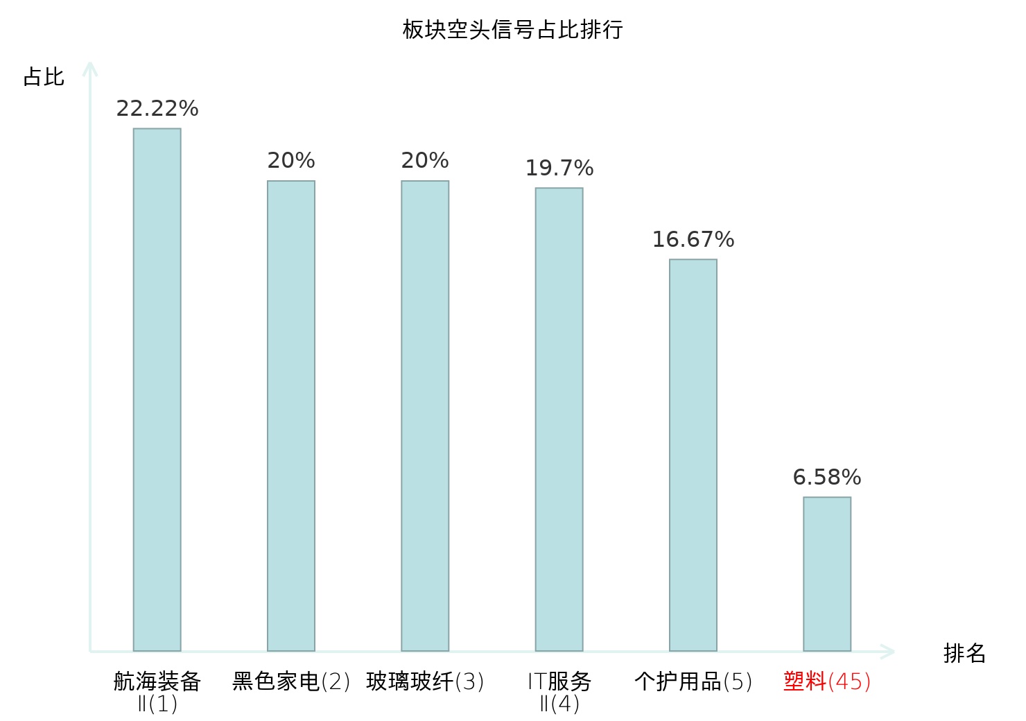 全市场所有行业板块中主力空头信号占比排名中,航海装备Ⅱ板块位居第一。纺织制造板块名次提升最快,较昨日上升107位。