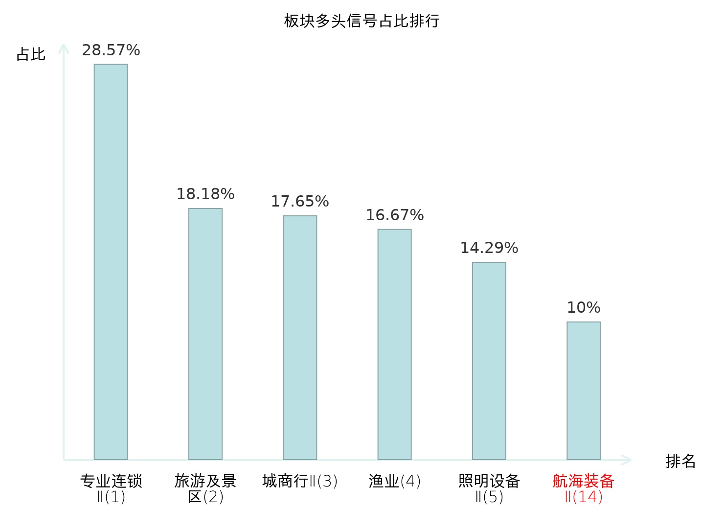 从主力宝信号数据分析,中科海讯所属的航海装备Ⅱ板块中共有1只股票发出主力多头信号,主力多头信号占比在全行业中排名第14位,较昨日上升3位。排名的提升表明主力对航海装备Ⅱ板块的买入意愿有所增强,为主力态度的变化提供了重要线索。全市场所有行业板块中,专业连锁Ⅱ板块的主力多头信号占比最高,位居第一。专业连锁Ⅱ板块名次提升最快,较昨日上升120位。这些变动揭示了不同行业间主力资金流动的趋势,为投资者提供了关于市场情绪和潜在投资机会的重要参考。