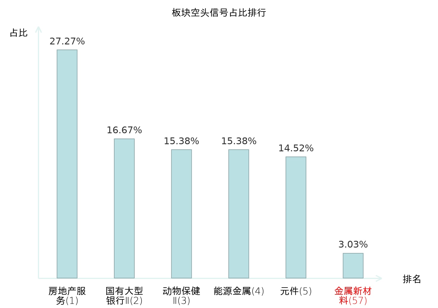 全市场所有行业板块中主力空头信号占比排名中,房地产服务板块位居第一。元件板块名次提升最快,较昨日上升122位。