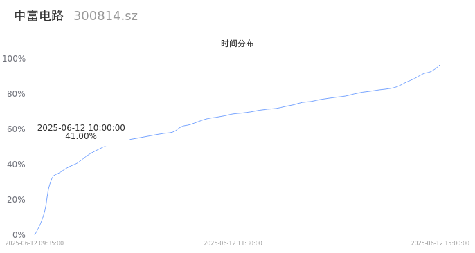 300814中富电路2025年06月12日成交12.77万手,成交金额4.03亿,相较昨日缩量3.84万手,换手率6.67%,成交清淡。