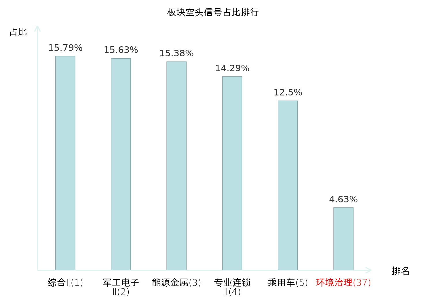 全市场所有行业板块中主力空头信号占比排名中,综合Ⅱ板块位居第一。证券Ⅱ板块名次提升最快,较昨日上升116位。