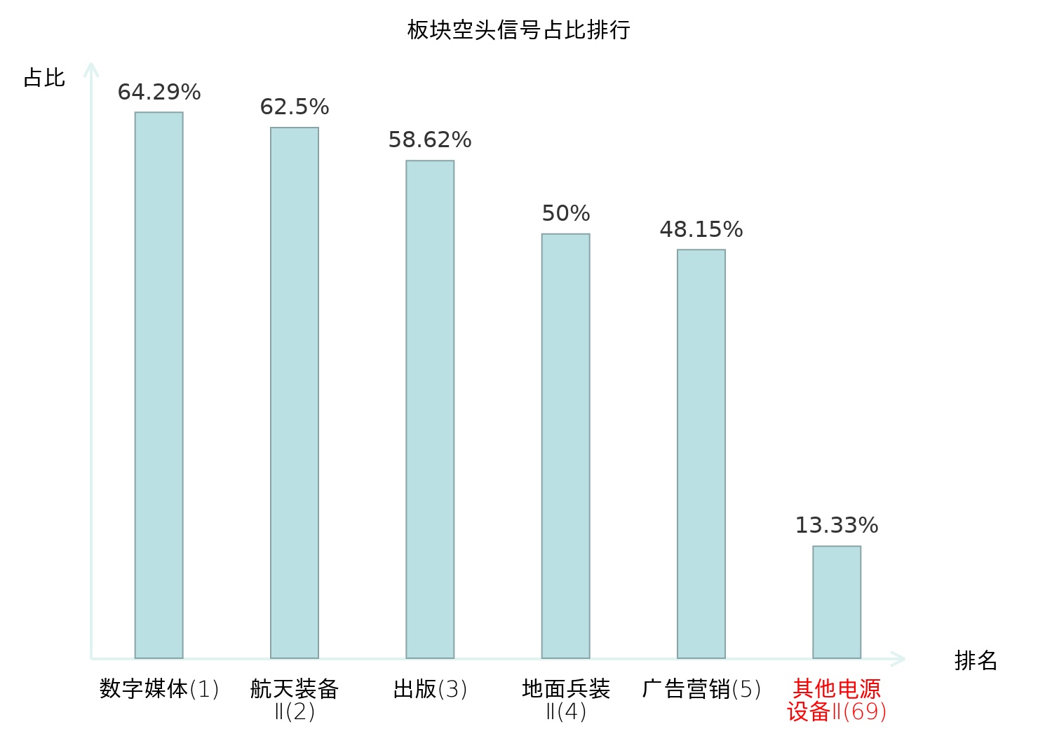 全市场所有行业板块中主力空头信号占比排名中,数字媒体板块位居第一。出版板块名次提升最快,较昨日上升116位。