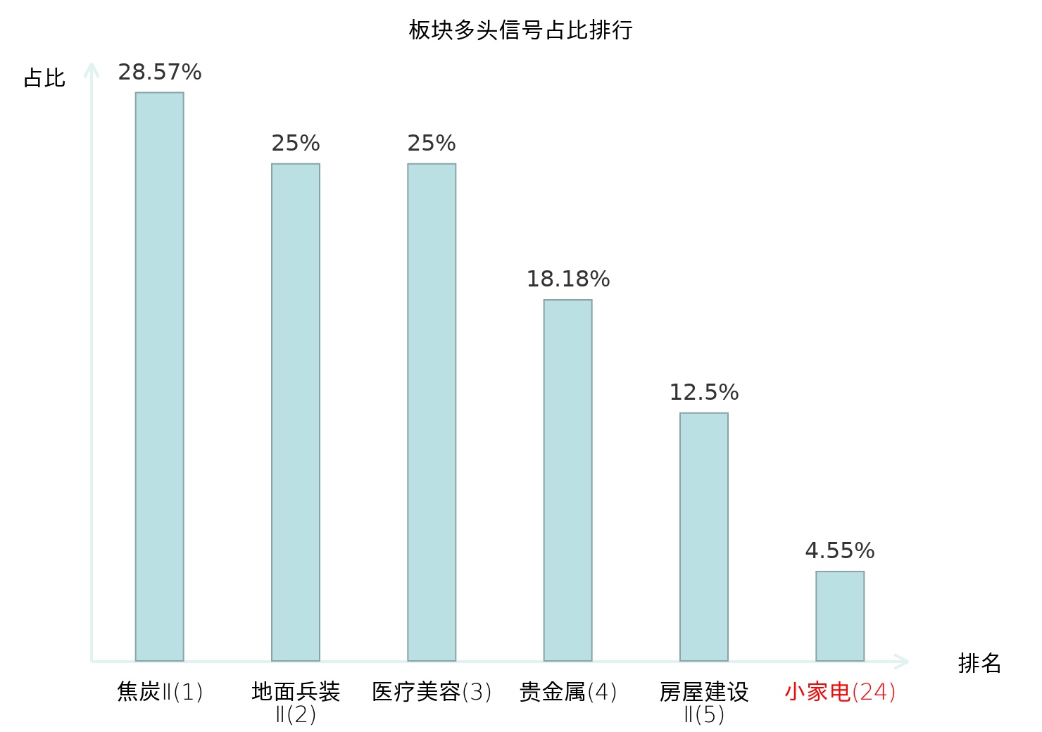 全市场所有行业板块中主力多头信号占比排名中,焦炭Ⅱ板块位居第一。医疗美容板块名次提升最快,较昨日上升124位。