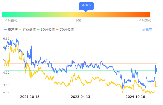 北鼎股份当前市净率PB为4.23,在所属的小家电中,市净率PB排15,前五名分别为彩虹集团市净率1.30、爱仕达市净率1.48、新宝股份市净率1.51、德尔玛市净率1.68、利仁科技市净率2.08。北鼎股份当前市净率PB为4.07,超过近3年25.89%的历史数据。
