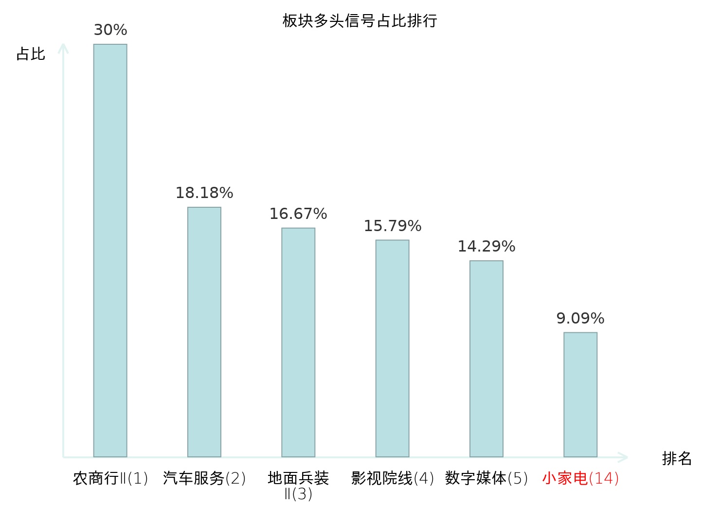 全市场所有行业板块中主力多头信号占比排名中,农商行Ⅱ板块位居第一。焦炭Ⅱ板块名次提升最快,较昨日上升115位。