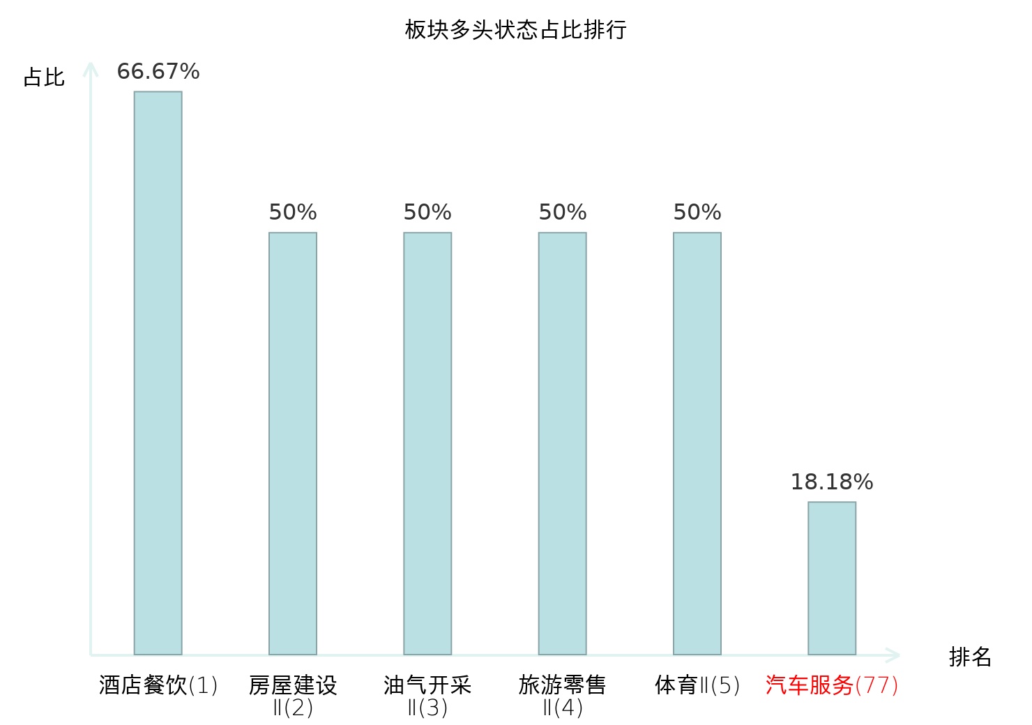 全市场所有行业板块中主力多头状态占比排名中,酒店餐饮板块位居第一。农商行Ⅱ板块名次提升最快,较昨日上升50位。