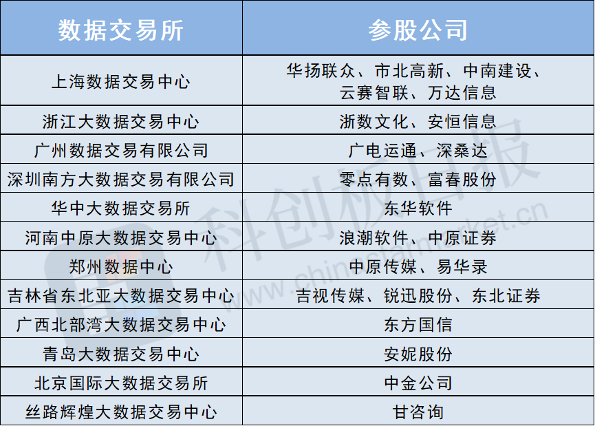 另外,综合东北证券、中银证券等机构研报,多家公司布局数据交易所,如易华录、万达信息、安恒信息、东方国信均持有地方大数据中心股份。