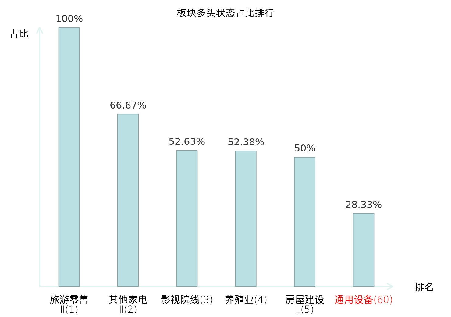 全市场所有行业板块中主力多头状态占比排名中,旅游零售Ⅱ板块位居第一。旅游零售Ⅱ板块名次提升最快,较昨日上升130位。