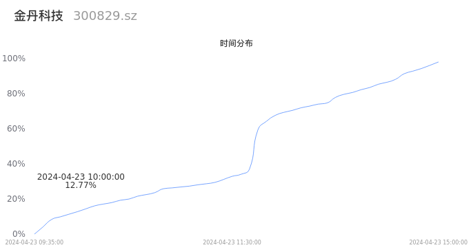 300829金丹科技2024年04月23日成交1.86万手,成交金额2803.76万元,相较昨日缩量2035手,换手率1.55%,成交清淡。