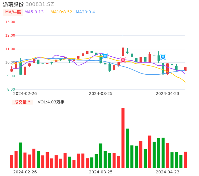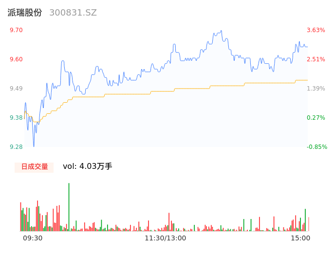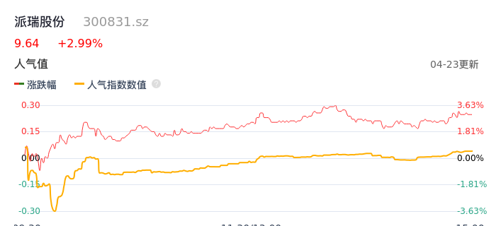 04月23日,派瑞股份收报9.64,股价涨幅2.99%,成交金额3833.86万元,换手率2.18%。