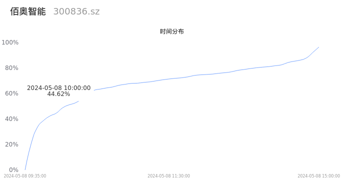 300836佰奥智能2024年05月08日成交4.66万手,成交金额1.37亿元,相较昨日缩量2.46万手,换手率10.91%,成交活跃。