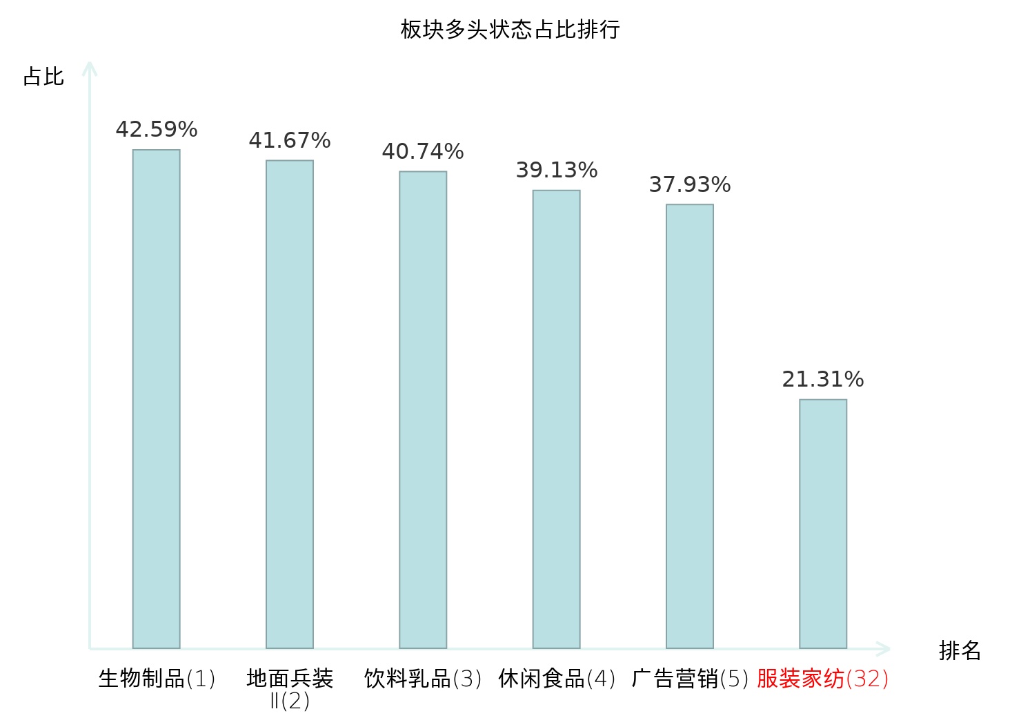 全市场所有行业板块中主力多头状态占比排名中,生物制品板块位居第一。黑色家电板块名次提升最快,较昨日上升65位。