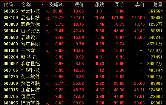 AI应用概念盘中走势活跃,截至收盘,光云科技20%涨停,品茗科技涨近16%续创新高,蓝色光标、山水比德均涨超15%,海天瑞声涨超7%。