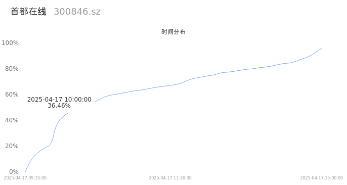 根据成交分布分析,该股票当天缩量成交,成交清淡。时间上看,早盘前半小时成交量占据当天总成交量的36.46%;价格上看,成交呈现中间峰。成交分布分析主要研究股票成交的分布特性,不具有预测功能,请知悉。