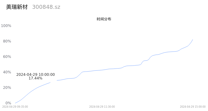 根据成交分布分析,该股票当天放量成交,成交清淡。时间上看,早盘前半小时成交量占据当天总成交量的17.44%;价格上看,成交呈现中间峰。成交分布分析主要研究股票成交的分布特性,不具有预测功能,请知悉。