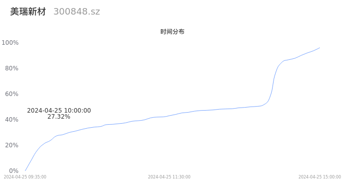 根据成交分布分析,该股票当天放量成交,成交清淡。时间上看,早盘前半小时成交量占据当天总成交量的27.32%;价格上看,成交呈现中间峰。成交分布分析主要研究股票成交的分布特性,不具有预测功能,请知悉。