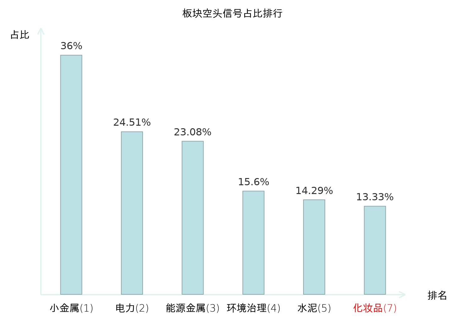 全市场所有行业板块中主力空头信号占比排名中,小金属板块位居第一。计算机设备板块名次提升最快,较昨日上升113位。