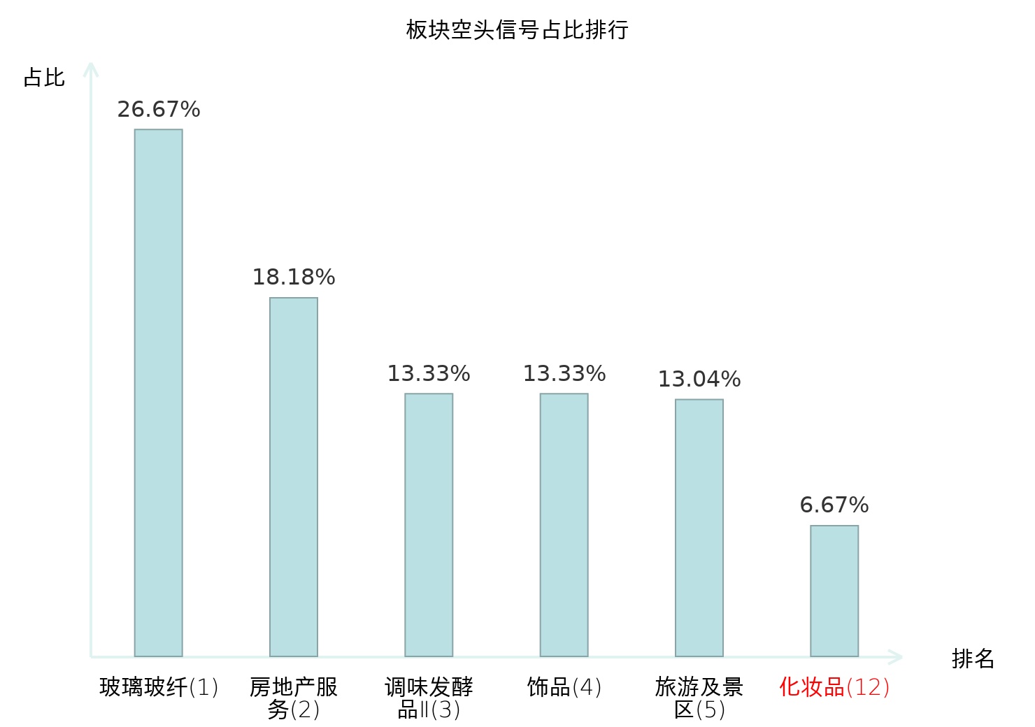 全市场所有行业板块中主力空头信号占比排名中,玻璃玻纤板块位居第一。元件板块名次提升最快,较昨日上升116位。