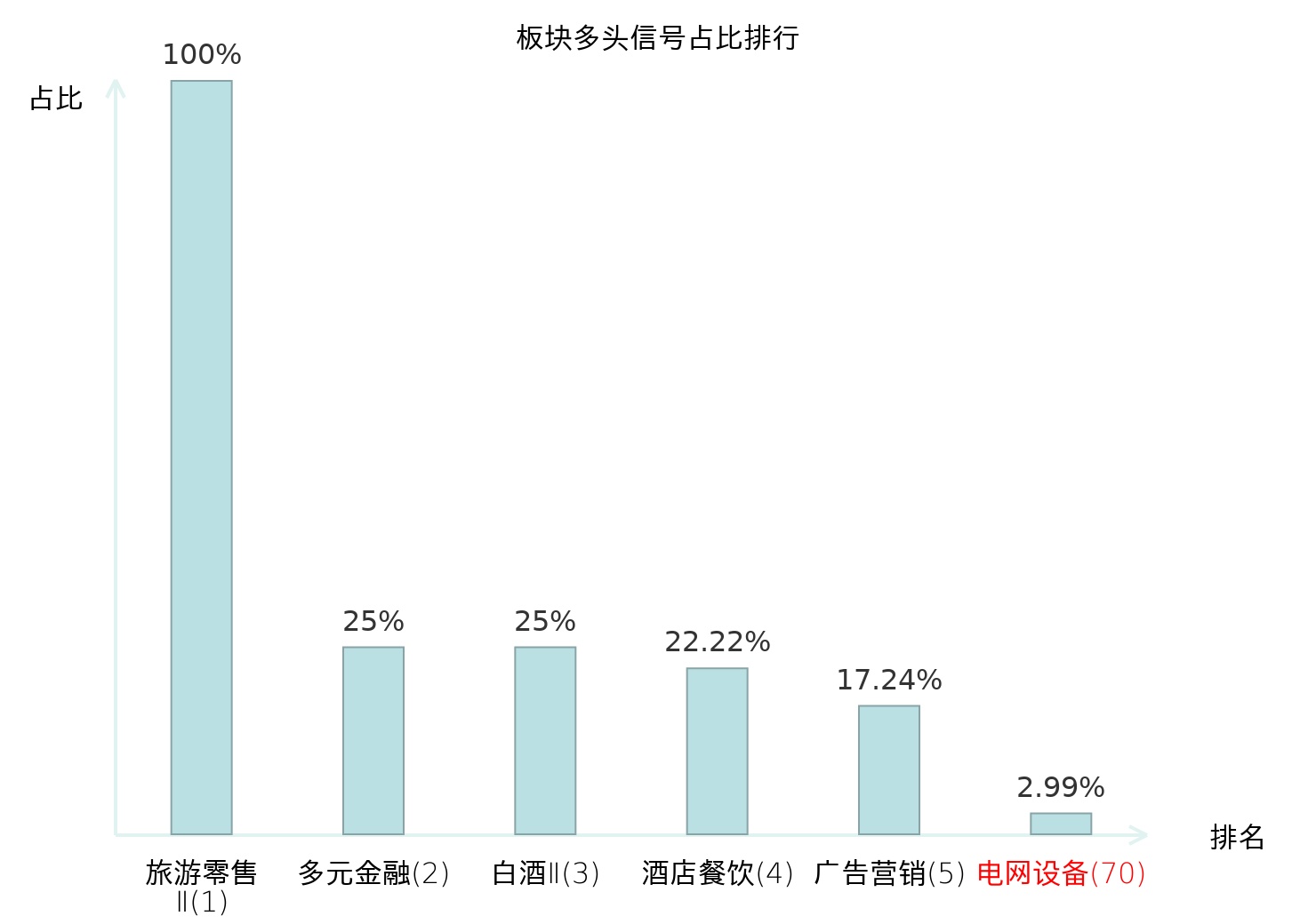 从主力宝信号数据分析,申昊科技所属的电网设备板块中共有4只股票发出主力多头信号,主力多头信号占比在全行业中排名第70位,较昨日下降20位。较高的排名表明主力当日买入意愿较强,此次排名下降可能反映了主力对该板块态度的微调。全市场所有行业板块中,旅游零售Ⅱ板块的主力多头信号占比最高,位居第一。旅游零售Ⅱ板块名次提升最快,较昨日上升130位。这些变动揭示了不同行业间主力资金偏好的变化,为投资者提供了关于市场情绪和潜在投资机会的重要线索。