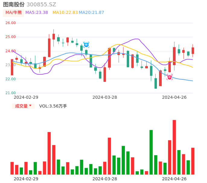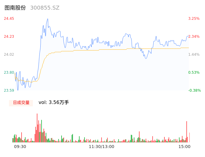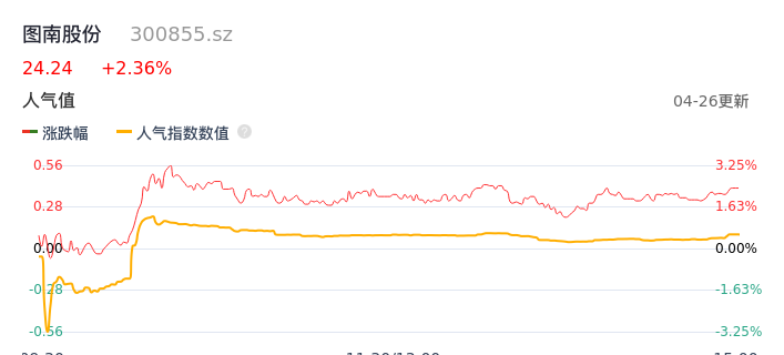 04月26日,图南股份收报24.24,股价涨幅2.36%,成交金额8578.09万元,换手率1.25%。