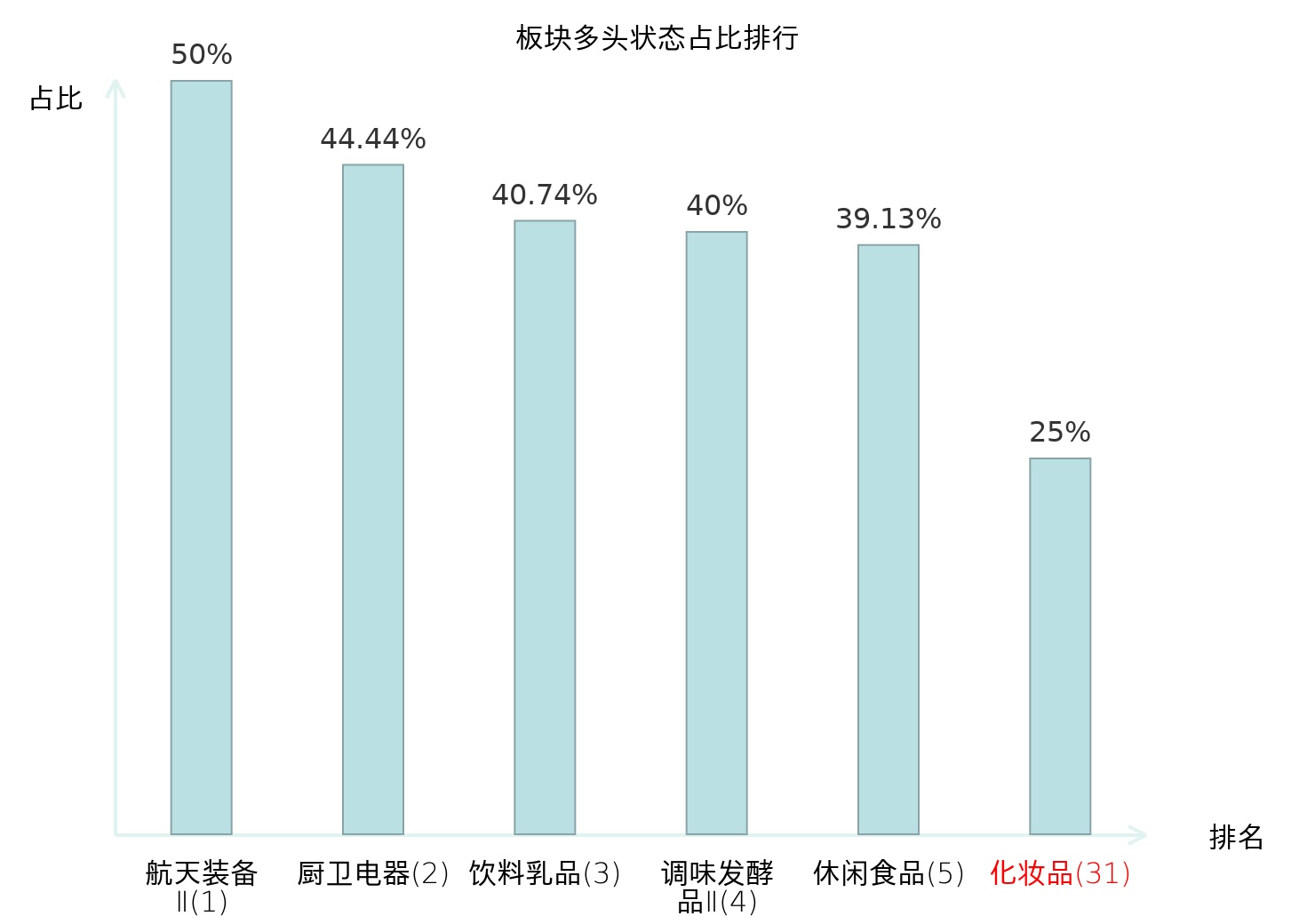 全市场所有行业板块中主力多头状态占比排名中,航天装备Ⅱ板块位居第一。林业Ⅱ板块名次提升最快,较昨日上升92位。