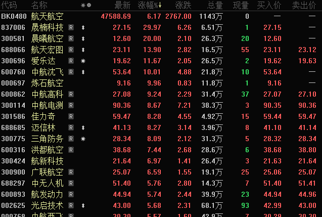 11月5日早盘,军工板块大面积爆发,华如科技、晨曦航空收获20%的涨停板,爱乐达、新光光电、上海瀚讯、华丰科技涨超10%,利君股份、中航沈飞、甘化科工、炼石航空触及10%涨停。