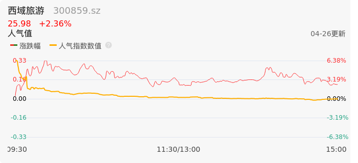 04月26日,西域旅游收报25.98,股价涨幅2.36%,成交金额4.88亿元,换手率19.39%。