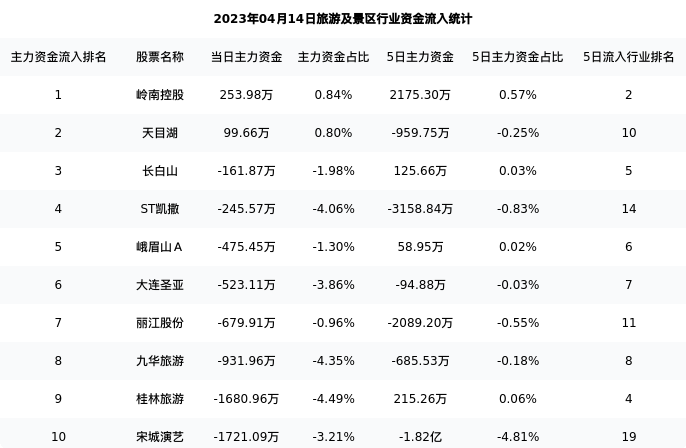 从主力资金流向来看,旅游及景区行业今日主力资金流入24.59亿元,在所有申万二级行业中排名:29/131。
