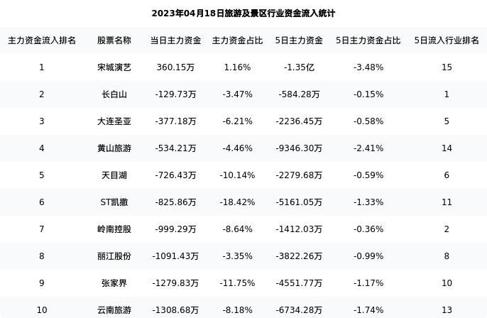 从主力资金流向来看,旅游及景区行业今日主力资金流入9.95亿元,在所有申万二级行业中排名:97/131。