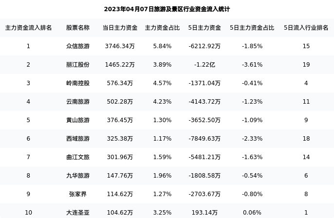 从主力资金流向来看,旅游及景区行业今日主力资金流入11.38亿元,在所有申万二级行业中排名:5/131。