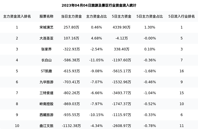 从主力资金流向来看,旅游及景区行业今日主力资金流入8.95亿元,在所有申万二级行业中排名:60/131。