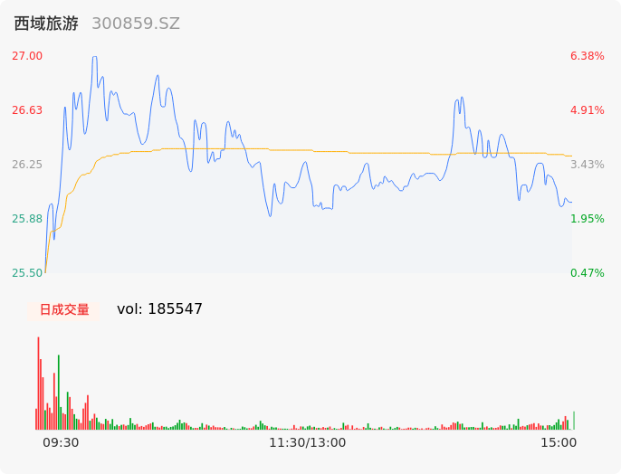 04月26日,西域旅游收报25.98,股价涨幅2.36%,成交金额4.88亿元,换手率19.39%。