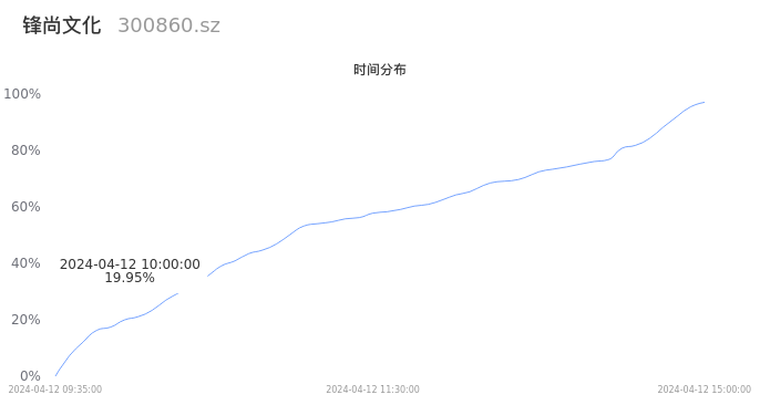 300860锋尚文化2024年04月12日成交1.55万手,成交金额5583.18万元,相较昨日缩量2694手,换手率1.92%,成交清淡。