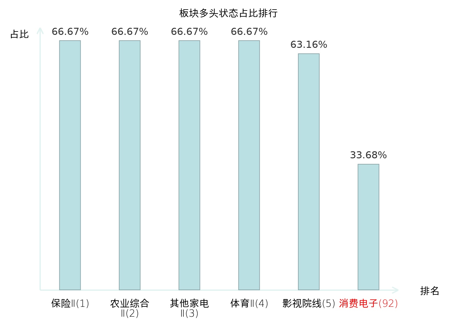 全市场所有行业板块中主力多头状态占比排名中,保险Ⅱ板块位居第一。冶钢原料板块名次提升最快,较昨日上升53位。