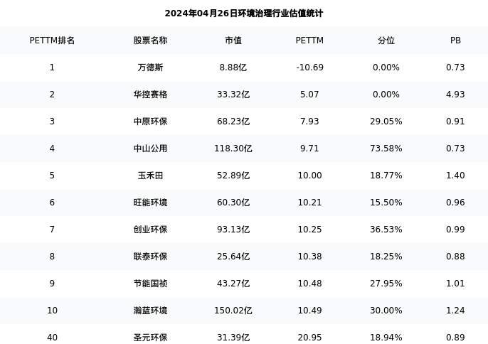 从估值角度看:圣元环保最新市盈率PETTM为20.95,在行业内排名39/103,处于18.94分位。