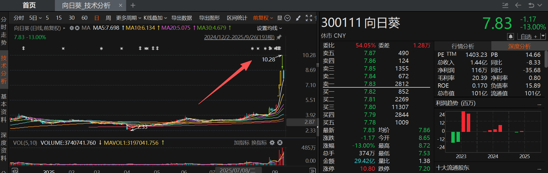 主营业务是抗感染类、心血管类等药物生产的向日葵年内迄今股价累计最大涨幅为341.2%向日葵9月11日公告,公司拟以发行股份及支付现金的方式购买漳州兮璞材料科技有限公司100%股权、浙江贝得药业有限公司40%股权并募集配套资金。兮璞材料主要从事高端半导体材料的研发、制造与销售,主要产品包括半导体级高纯度电子特气、硅基前驱体、金属基前驱体等,广泛应用于半导体制造过程中的扩散、蚀刻、薄膜沉积等关键工艺环节。贝得药业作为向日葵的控股子公司,主要从事抗感染类、心血管类、消化系统类等药物的研发、制造和销售。