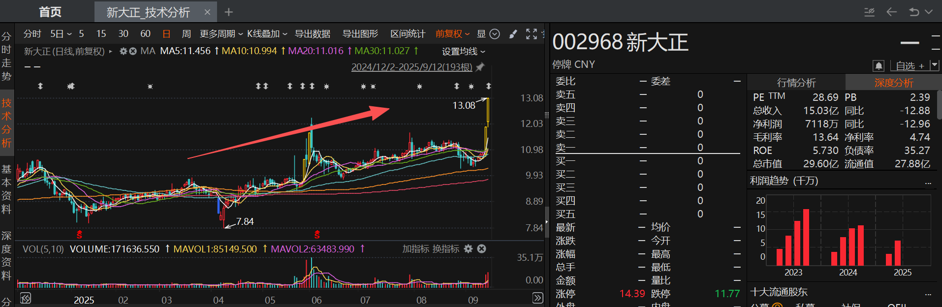 主营业务是智慧城市公共建筑与设施的运营和管理的新大正年内迄今股价累计最大涨幅为66.84%新大正今日披露重大资产重组预案,公司拟通过发行股份及支付现金的方式,取得嘉信立恒设施管理(上海)有限公司(简称“嘉信立恒”)75.15%股权,并拟向不超过35名特定对象发行股份募集配套资金。此次交易的价格尚未确定。嘉信立恒主营业务为综合设施管理服务,主要服务于各类工商业客户,核心业务聚焦于驻场综合设施管理、绿色能源管理、大型活动安保。新大正表示,此次交易完成后,公司将进一步拓展业务辐射范围,显著提升在华东长三角区域、华北环渤海湾区域、华南大湾区区域和华西成渝经济带的业务比重。公司证券将于2025年9月29日(星期一)开市起复牌。