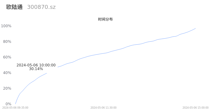 300870欧陆通2024年05月06日成交3.29万手,成交金额1.55亿元,相较昨日缩量7799手,换手率3.25%,成交清淡。