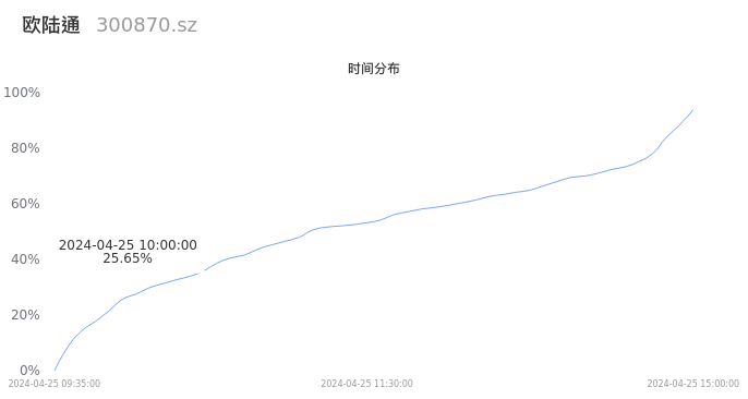 300870欧陆通2024年04月25日成交1.88万手,成交金额8225.33万元,相较昨日缩量2531手,换手率1.86%,成交清淡。