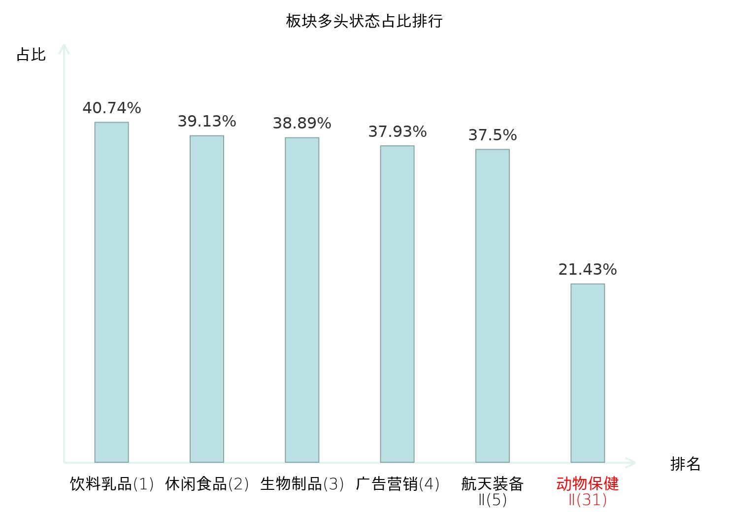全市场所有行业板块中主力多头状态占比排名中,饮料乳品板块位居第一。国有大型银行Ⅱ板块名次提升最快,较昨日上升71位。